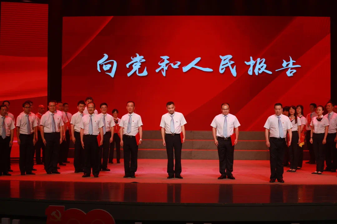 晚會(huì)在《向黨和人民報(bào)告》中進(jìn)入高潮,集團(tuán)黨委書(shū)記、董事長(zhǎng)周儉,集團(tuán)黨委副書(shū)記、副董事長(zhǎng)、總經(jīng)理朱志康分別為榮獲2020年集團(tuán)先進(jìn)基層黨組織、優(yōu)秀黨務(wù)工作者和優(yōu)秀共產(chǎn)黨員代表頒獎(jiǎng);現(xiàn)場(chǎng),全體新黨員和老黨員在周儉董事長(zhǎng)帶領(lǐng)下莊嚴(yán)宣誓,表達(dá)了身為新時(shí)代共產(chǎn)黨員的責(zé)任與擔(dān)當(dāng);集團(tuán)下屬5家公司主要負(fù)責(zé)人向全體人員現(xiàn)場(chǎng)報(bào)告本公司“十四五”時(shí)期目標(biāo),表達(dá)了對(duì)黨、對(duì)政府、對(duì)人民的承諾。