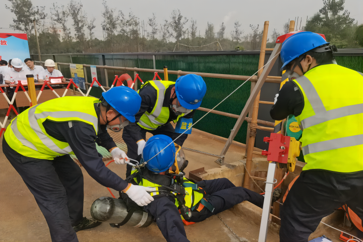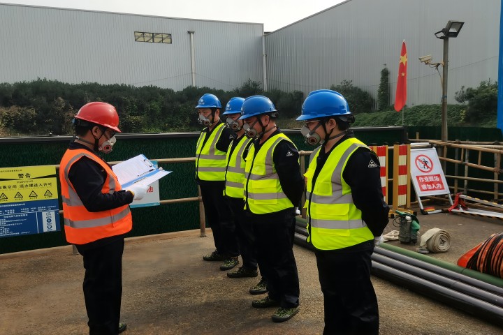 本次演練分為生產(chǎn)車間藥劑池清理作業(yè)事故應急預案演練、危險化學品甲醇泄漏事故應急救援演練、工業(yè)廢水超量應急預案演練和轉(zhuǎn)輸口水質(zhì)超標應急管控演練等四個科目,分別模擬藥池清堵作業(yè)人員中毒、甲醇運輸車藥劑泄漏、工業(yè)廢水突增超量和轉(zhuǎn)輸口水質(zhì)超標事件。演練按照預案開展應急救援和調(diào)度處置操作,最終圓滿完成各項任務(wù),達到了預期效果。