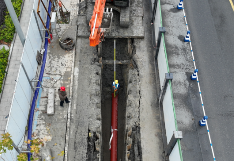 隨著最后一根管道的安裝到位,全長(zhǎng)350米的柯南大道排水管道應(yīng)急搶修工程管線順利貫通并完成閉水試驗(yàn)。