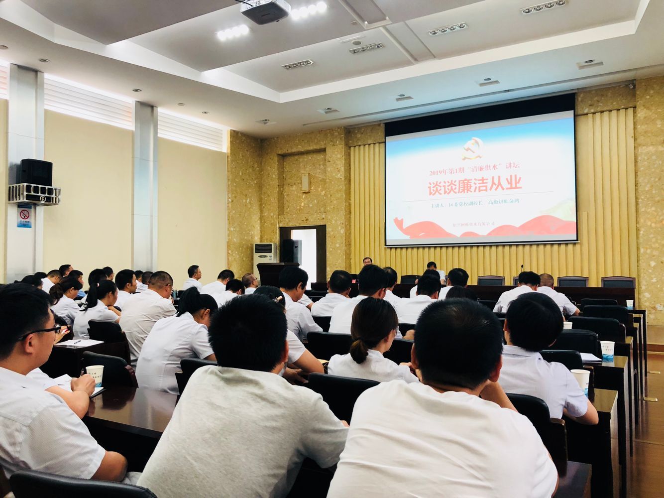俞老師圍繞“廉潔從業(yè)”這一主題,給大家講明形式、劃清紅線,既有深入淺出的理論闡述,又有廣征博引的案例分析,更有實踐層面的對策思考,向我們深刻闡述了新時代下的新理念、新觀點、新論斷,指出在全面從嚴治黨新形勢下,全體黨員及干部要自覺做到“拒腐蝕、永不沾”,把遵紀守法、廉潔奉公作為自己的生命線,時刻保持對廉潔從業(yè)的敬畏尊崇,時刻用身邊的典型案例警示自己,時刻筑牢廉政建設(shè)的防線。以積極陽光的姿態(tài)爭當廉潔從業(yè)好員工,為供水事業(yè)發(fā)展做出更大的貢獻。