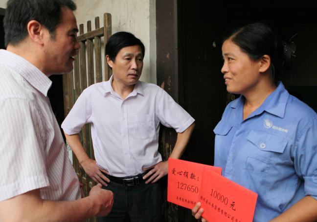 8月1日上午,集團(tuán)倪阿泉、單寶子、高小林等領(lǐng)導(dǎo)在供水公司領(lǐng)導(dǎo)的陪同下專(zhuān)程前往錢(qián)清看望慰問(wèn)了供水公司柯西分公司家庭受災(zāi)職工莫煜君,為她送去了集團(tuán)干部職工的愛(ài)心款127650元及集團(tuán)公司的資助款10000元,表達(dá)集團(tuán)及干部職工的關(guān)愛(ài)之情。莫煜君連聲道:“謝謝集團(tuán)公司,謝謝領(lǐng)導(dǎo)關(guān)心……”感激之情溢于言表。