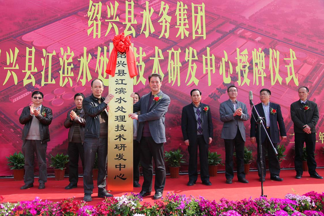 3月28日,紹興縣江濱水處理技術(shù)研發(fā)中心掛牌儀式在江濱水處理公司隆重舉行,集團(tuán)領(lǐng)導(dǎo)班子、集團(tuán)部室負(fù)責(zé)人,浙江大學(xué)、浙江工業(yè)大學(xué)等高校老師出席授牌儀式,集團(tuán)倪董事長(zhǎng)為中心成立授牌。