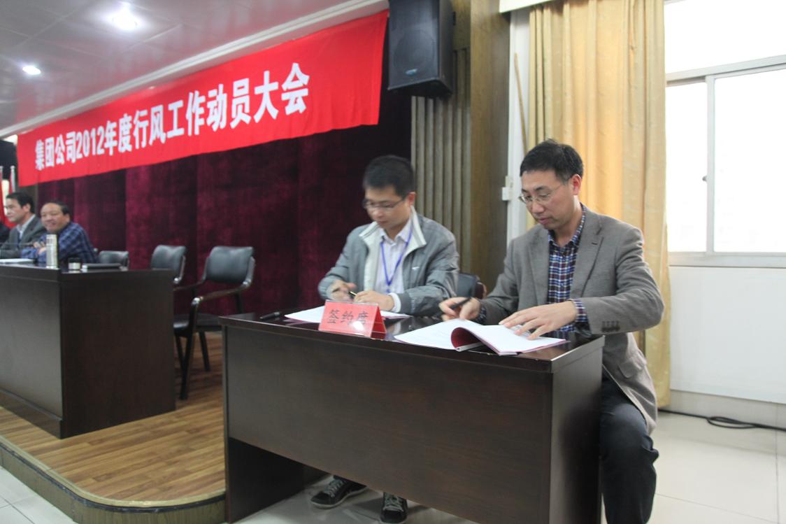 會上,集團公司黨委副書記、紀委書記高小林作行風工作動員,他全面總結(jié)了去年行風工作所取得的成績和存在的不足,客觀分析了所面臨的考驗和壓力。同時,提出了今年行風建設(shè)總體目標和工作要求。隨后,集團副總經(jīng)理馮梁峰與下屬各單位、各部室簽訂了《2012年度行風建設(shè)目標管理責任書》。