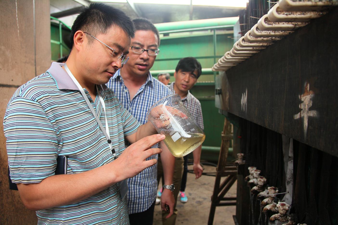 圖為集團(tuán)技術(shù)骨干為企業(yè)現(xiàn)場(chǎng)解答污水處理方面難題