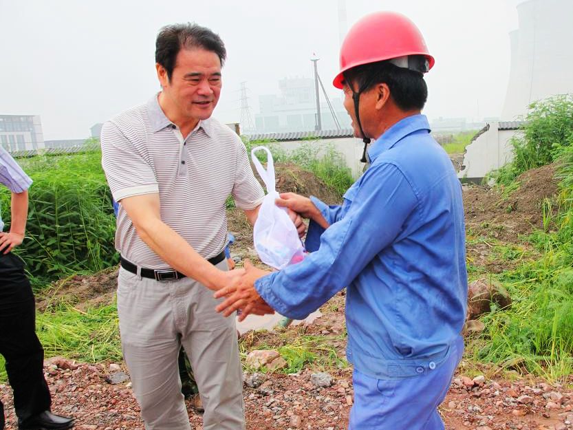 圖為集團(tuán)單總經(jīng)理慰問(wèn)紹興水處理公司機(jī)修員工