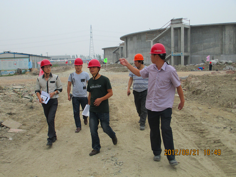 圖為現(xiàn)場檢查濱海印染產(chǎn)業(yè)集聚區(qū)污水集中預處理工地