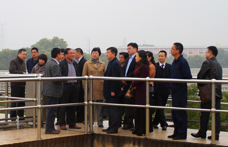 調(diào)研組詳細聽取了紹興水處理公司關于污水處理設備設施投資、運營情況等介紹,實地參觀了紹興水處理公司三期曝氣池,對紹興污水處理的規(guī)模和處理能力給予高度評價。
