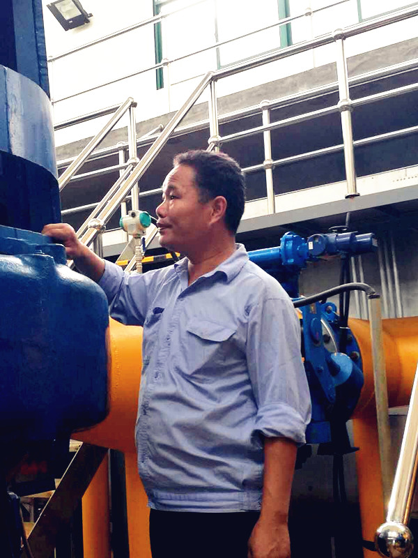 從 2001 年至今,張立平一直從事設(shè)備維修管理工作。剛參加工作時(shí),張立平也曾對(duì)許多故障束手無(wú)策。對(duì)此,他一方面在網(wǎng)上查閱資料,另一方面虛心向廠家和同事請(qǐng)教,仔細(xì)拆卸每一個(gè)故障設(shè)備的部件,細(xì)致琢磨每個(gè)零件的功能原理,經(jīng)過幾年的努力,逐漸成為了設(shè)備保障的行家里手。2013年,在設(shè)備廠家撤退、無(wú)現(xiàn)成備件、無(wú)直接可借鑒的技術(shù)的情況下,張立平組織維修力量,對(duì)新區(qū)離心機(jī)進(jìn)行專題研究,并先后開展了離心機(jī)下水管優(yōu)化改造、油泵改造、設(shè)置離心機(jī)沖洗管等創(chuàng)新舉措,不僅解決了原來離心機(jī)處理量小、含水率高的基本性難題,而且緩解了漏油故障和氣泡問題,確保了污泥處理系統(tǒng)的全運(yùn)行。圍繞保障運(yùn)行,張立平提出了“以養(yǎng)代修、以改促修”的維修理念,他帶領(lǐng)團(tuán)隊(duì)先后完成了鼓風(fēng)機(jī)循環(huán)水泵自動(dòng)控制方案、排氣閥門優(yōu)化改造方案等10 余項(xiàng)創(chuàng)新型改造方案,通過實(shí)施優(yōu)化改造,使設(shè)備經(jīng)常性故障得以逐步消除,為水處理系統(tǒng)的正常運(yùn)行提供了有力保障。