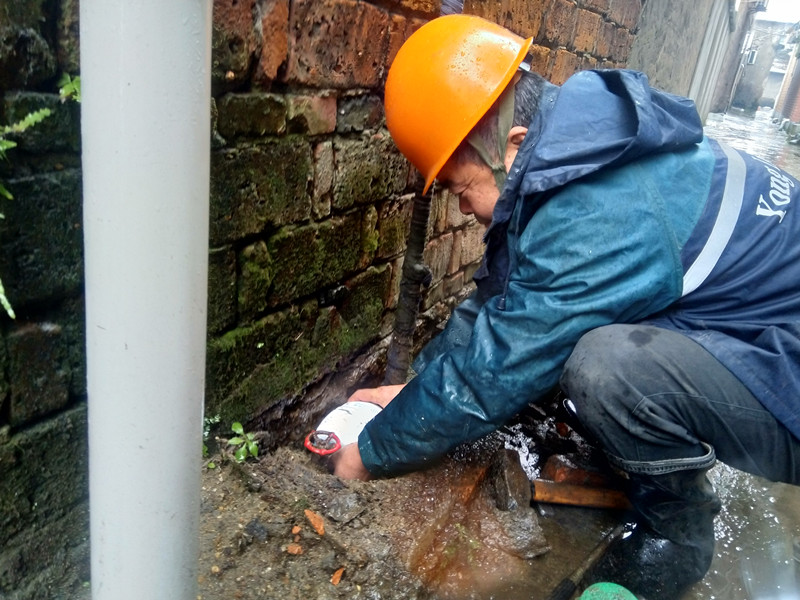 圖為供水管道工在雨雪中更換遠程水表
