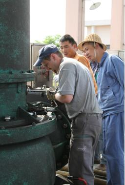 潛污泵全變頻改造是確保污水處理系統(tǒng)達標尾水平安、經濟排放的重要工作。作為全變頻改造的核心內容之一,5月下旬,兩名德國技術專家前來水處理公司,對一、二期385KW大功率潛污泵進行了全面檢查。