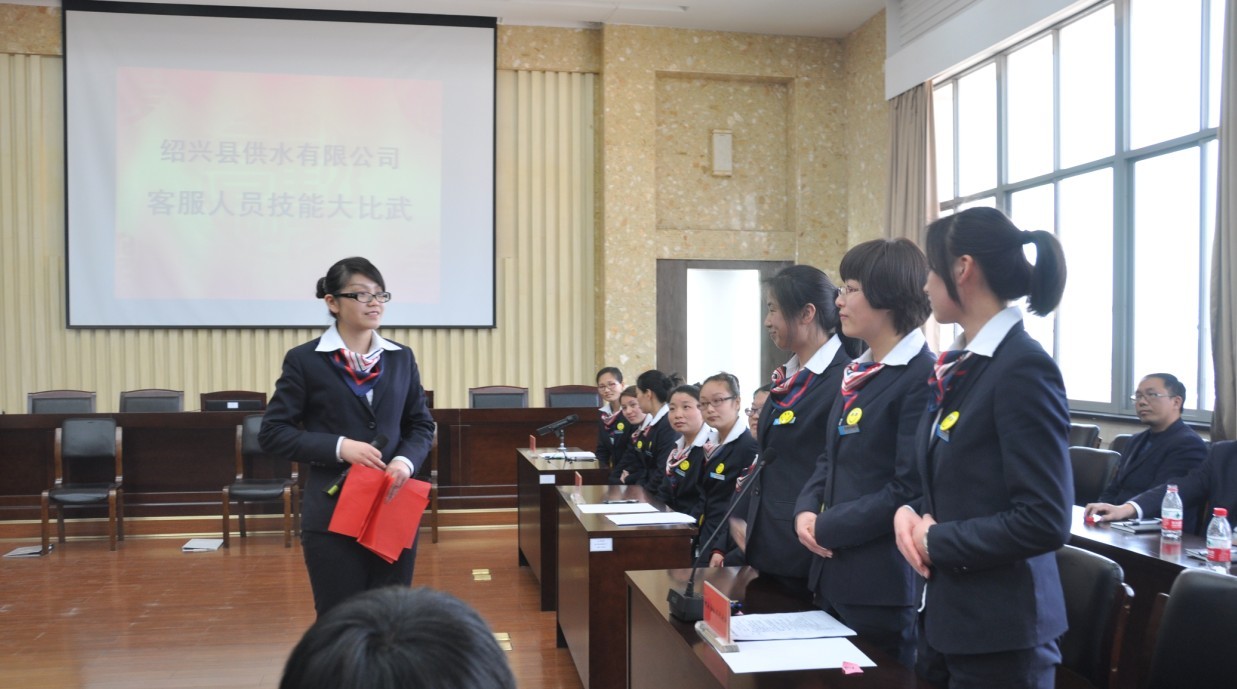 本次比武,共有6支隊伍18人參加角逐,由集團企管部和公司領導擔任本次比武的評委,各部門、單位派職工代表現(xiàn)場觀摩比武。通過服務禮儀展示、供水知識問答、案例分析和情景模擬等四個項目的比試,充分展示了公司營業(yè)客服人員的業(yè)務素質和服務技能,經過激烈角逐,公司代表隊趙瓊獲得一等獎;柯北分公司代表隊駱春琴、葉紅芳獲得二等獎;公司代表隊張超男、城區(qū)分公司代表隊魏麗麗、王吉莉獲得三等獎。