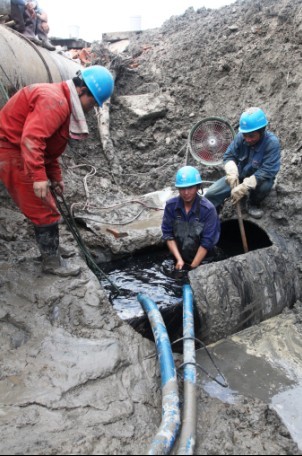 該污水管道是全縣三大排污管線之一,承接了錢清、楊汛橋、夏履、湖塘、柯巖的工業(yè)污水和生活污水排放。經(jīng)過(guò)前期充分準(zhǔn)備,整項(xiàng)遷建工程從5月25日開(kāi)始,至6月18日進(jìn)行兜口,通過(guò)搶修人員的持續(xù)作戰(zhàn),兜口工作提前完成,遷建工程比計(jì)劃提前15個(gè)小時(shí)完工。