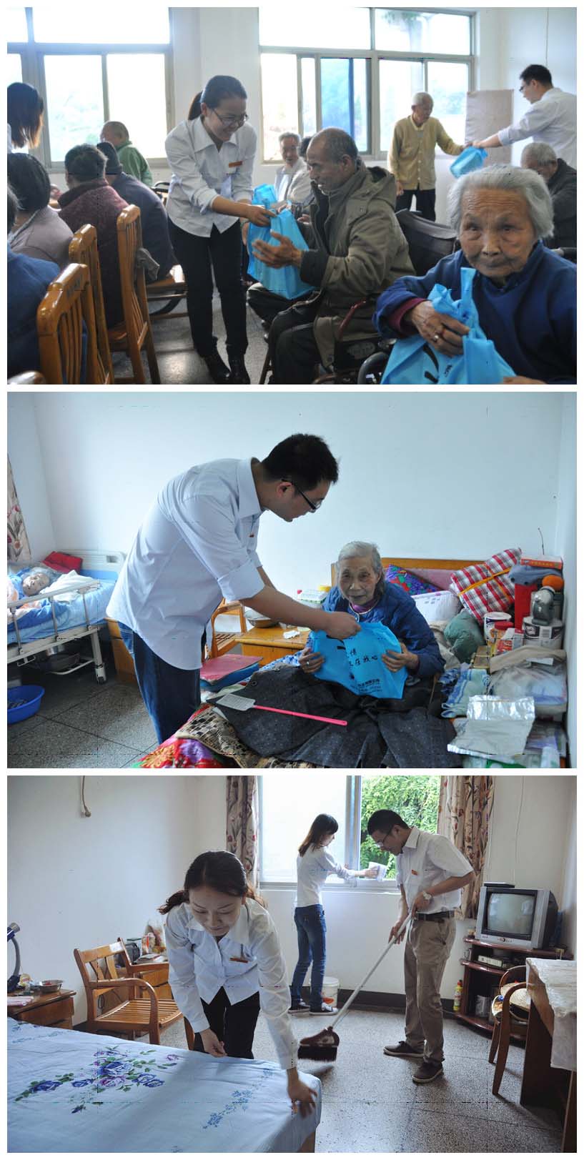 為發(fā)揚(yáng)中華民族尊老愛老的傳統(tǒng)美德,增強(qiáng)我公司青年志愿者尊老愛老的意識。5月8日上午,公司10多名志愿者來到柯橋夕陽紅中心,為老人鋪床打掃衛(wèi)生,并將公司精心準(zhǔn)備的蛋糕、水果、毛巾等慰問品一一送到老人們的手中,奉獻(xiàn)自己的一份愛心。