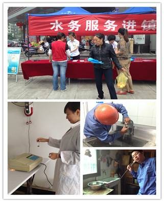 供水便民服務(wù)隊(duì)“三進(jìn)”活動(dòng)由分公司經(jīng)理親自帶隊(duì),實(shí)地走訪了蘭亭鎮(zhèn)婁宮村、蘭亭中學(xué)及紹興縣紅盛紡織有限公司,并為用戶免費(fèi)提供管網(wǎng)聽漏、水質(zhì)檢測(cè)和清洗水龍頭濾網(wǎng)等供水設(shè)施例行維護(hù)等服務(wù),得到了用戶的一致好評(píng)。此次“三進(jìn)”活動(dòng),還推出“進(jìn)村入戶”用水設(shè)施檢修服務(wù)活動(dòng),上門免費(fèi)對(duì)婁宮村的3戶村民和1家餐館開展水嘴、抽水馬桶檢查,水質(zhì)檢測(cè)及供水管道改道換裝等服務(wù),得到了村民的高度贊揚(yáng)。