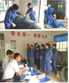 本次演練分空氣呼吸機(jī)正確佩戴使用和瓶身、針型閥應(yīng)急堵漏操作兩個(gè)項(xiàng)目進(jìn)行,參演人員在現(xiàn)場(chǎng)模擬出的緊張氛圍中都能井然有序、有條不紊地完成全套動(dòng)作。通過本次液氯演練,提高了值班員對(duì)突發(fā)事故的分析應(yīng)對(duì)處理能力,取得了較好的效果。