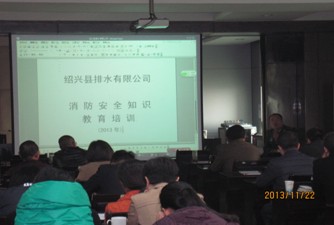 為增強職工的消防安全意識,11月22日,公司特邀柯橋區(qū)消防大隊參謀長焦志高到公司授課。各部、分公司消防管理人員、安全員共48人參加培訓(xùn)。 會上,焦參謀長詳細講解了消防安全常識二十條,并配合火災(zāi)視頻短片生動形象的從變配電設(shè)備著火撲救、著火逃生、人員救護等三方面講授消防專業(yè)知識。