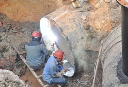 12月25日,經(jīng)過(guò)充分準(zhǔn)備,袍江西湖頭橋小舜江一期DN1600供水總管進(jìn)行了新老管兜口作業(yè)。