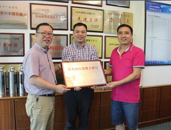 公司榮獲浙江省“最有組織凝聚力單位”稱號(hào)