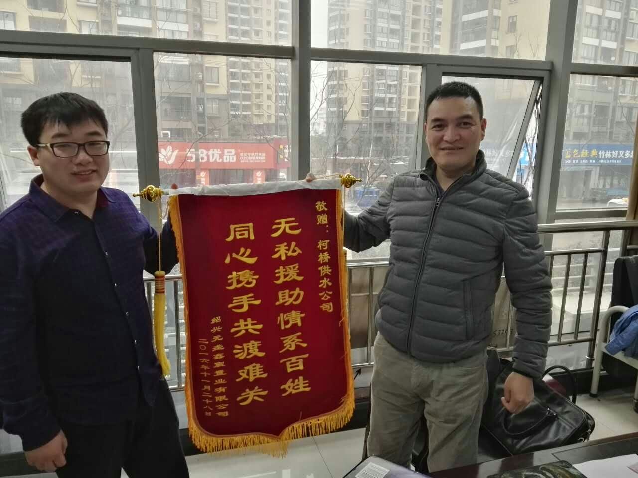 12月5日,二次供水分公司收到紹興元壟鑫宸置業(yè)有限公司大都會項目負(fù)責(zé)人專程送來的錦旗,對分公司工作人員為大都會樣板房場外給水管道建設(shè)提供的真情服務(wù)表示贊賞和感謝。