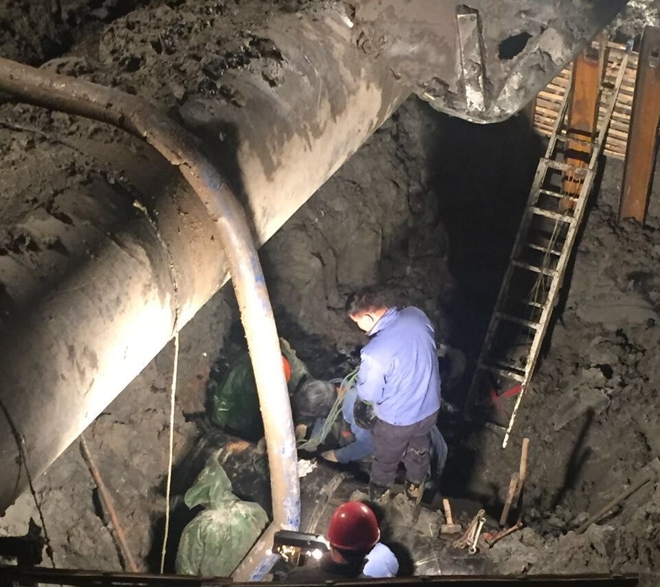 接到搶修電話后,公司相關(guān)人員立即趕至現(xiàn)場,并迅速組織搶修隊伍投入搶修。關(guān)閥門、排水、開挖路面……搶修工作緊張而有序地進行著。冬夜的戶外徹骨寒冷,搶修人員雖然已經(jīng)凍得瑟瑟發(fā)抖,滿臉布滿疲憊,但他們始終咬牙堅持。經(jīng)過17個小時的艱苦奮戰(zhàn),終于在次日早上7點將漏點修復,恢復正常供水。