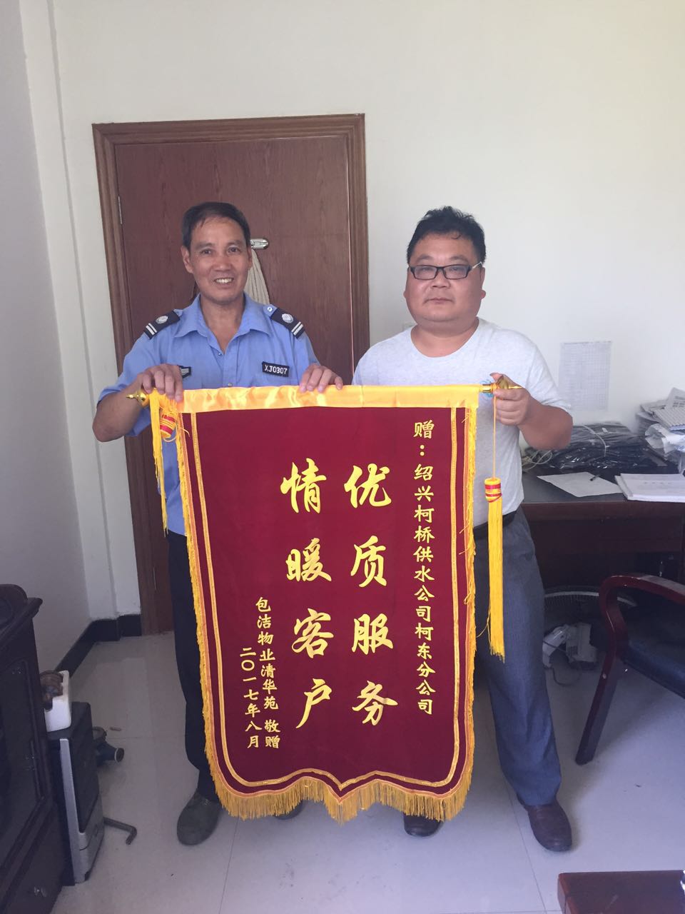 8月25日,平水鎮(zhèn)清華苑包潔物業(yè)專程送來錦旗,感謝柯東分公司提供的優(yōu)質服務。